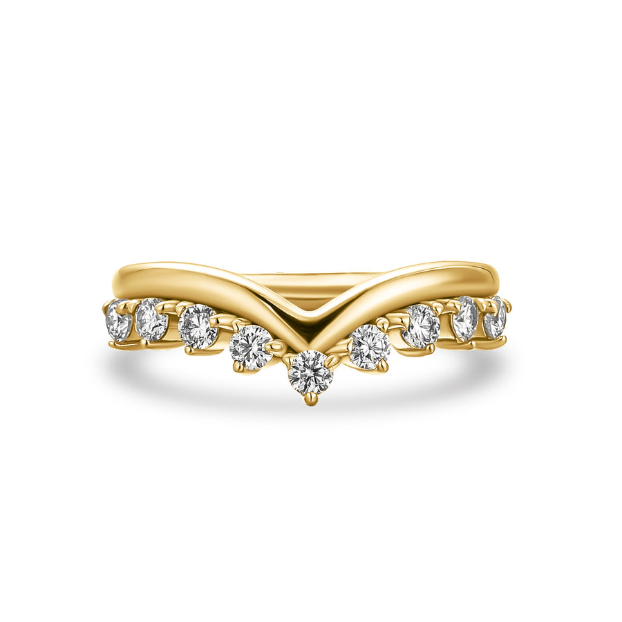 Moissanite Yellow Gold Petite Pavé Curved Matching Wedding Ring