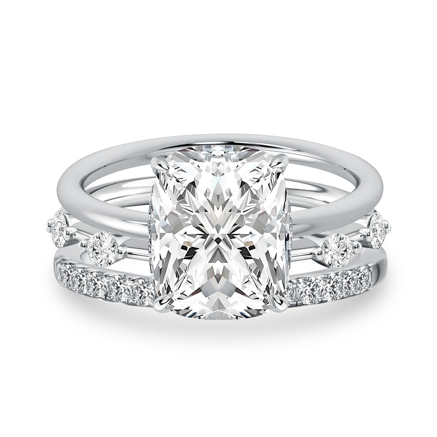Moissanite 3.0Ct Radiant Cut White Gold Stack Wedding Ring with Enhancer Wedding Band