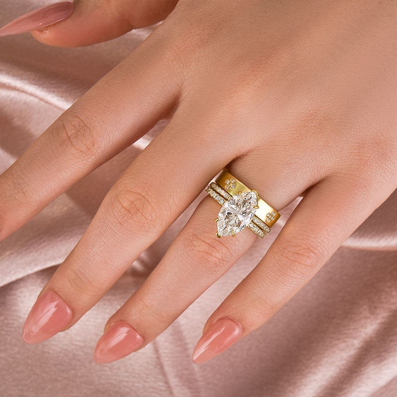 Moissanite 4.0Ct Marquise Cut Yellow Gold Wedding Ring with Open Pear Cut Enhancer Ring