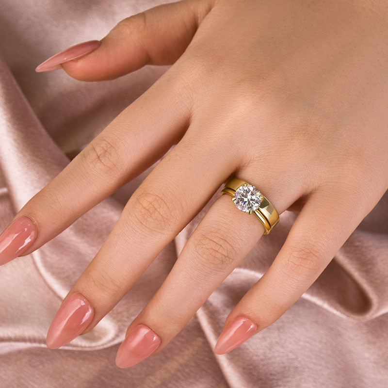 4.0 Ct Round Cut Yellow Gold Moissanite Diamond Wedding Ring