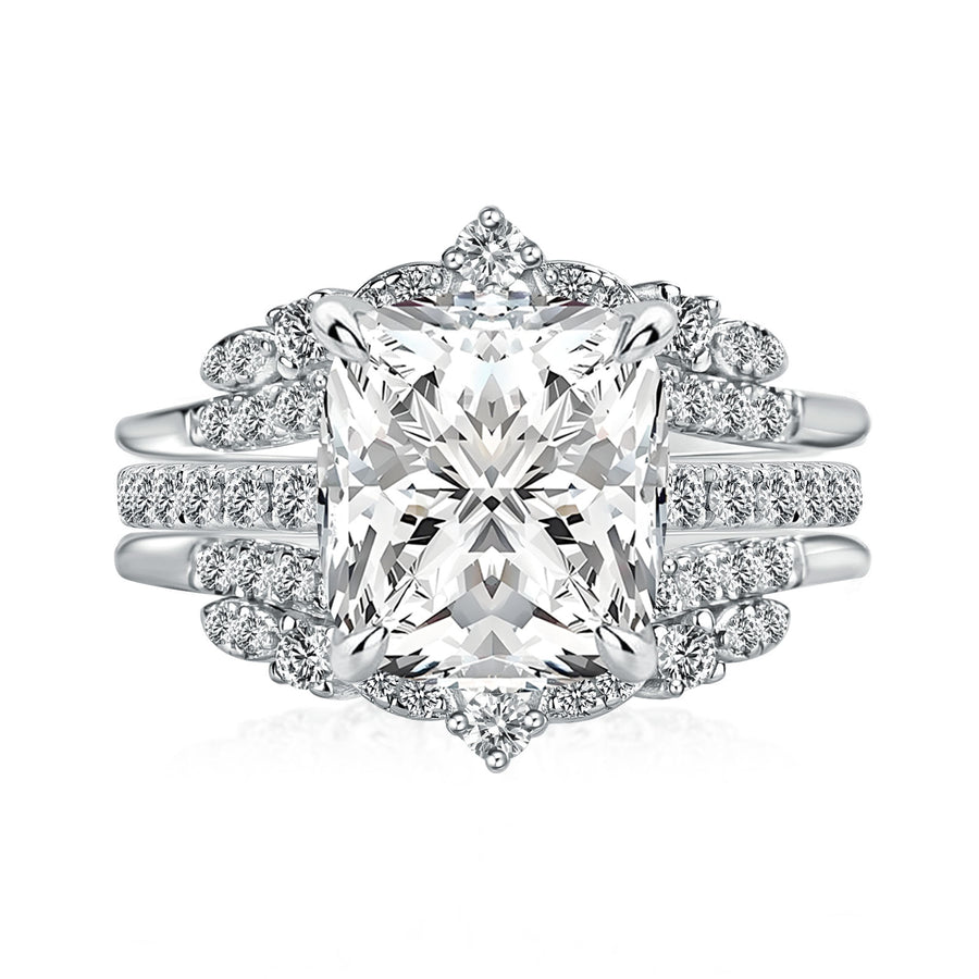 Moissanite 3.0Ct Cushion Cut White Gold Stack Wedding Ring with Jacket Wedding Band