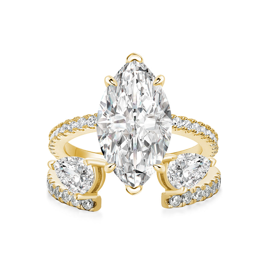 Moissanite 4.0Ct Marquise Cut Yellow Gold Wedding Ring with Open Pear Cut Enhancer Ring