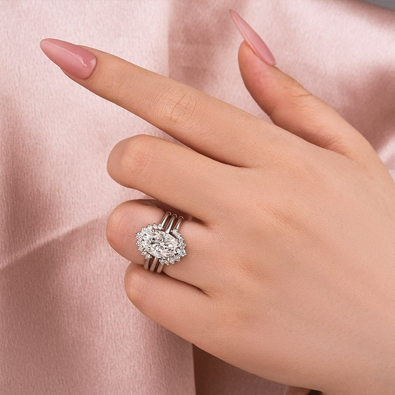 Moissanite 4.0Ct Solitaire Oval Cut White Gold Wedding Ring Set