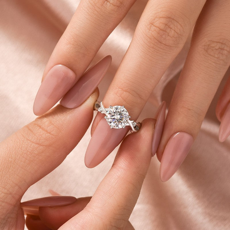 Design Inspiration: Introducing The Twig, Rodiffy's flagship engagement ring, inspired by the idea of adding new branches to your family tree. This exquisite piece features a dainty, twig-like band that gently caresses the wearer's ring finger, symbolizing growth and connection. The soft accents add a subtle sparkle, while the delicate band beautifully emphasizes the size and brilliance of the center stone. The Twig is a perfect blend of nature's elegance and modern sophistication, making it a timeless choice for celebrating your love and commitment.