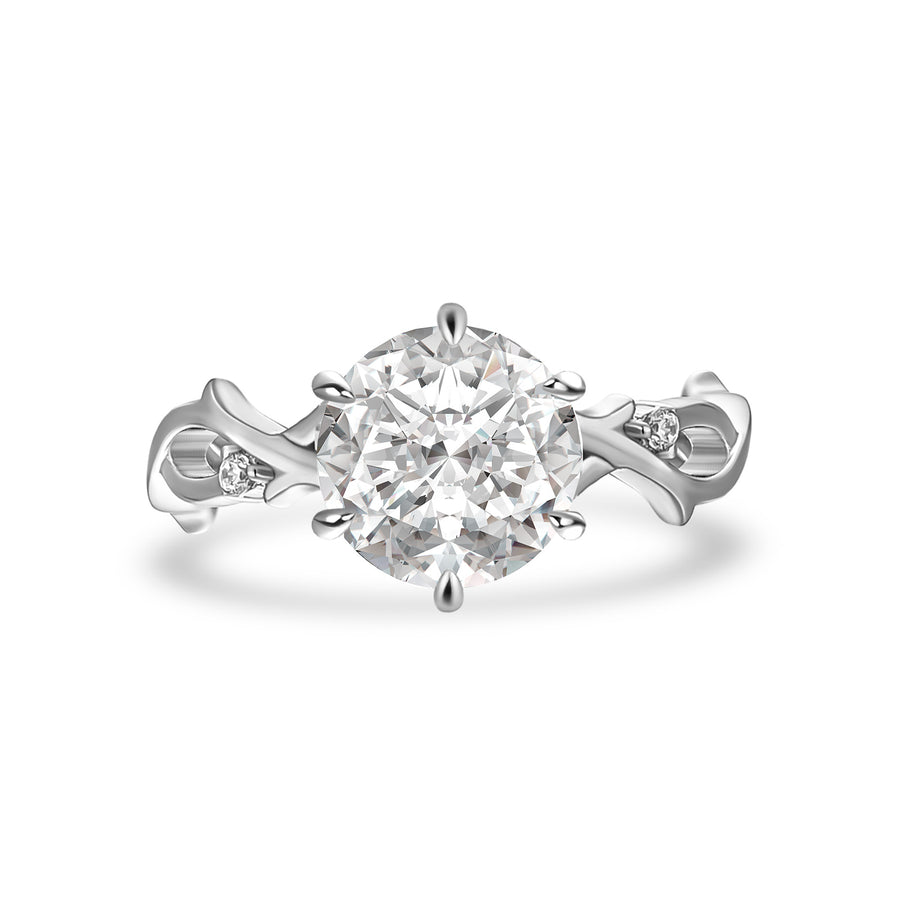 Moissanite 2.0 Ct Twig 6 Prong Round Cut Twist White Gold Engagement Ring