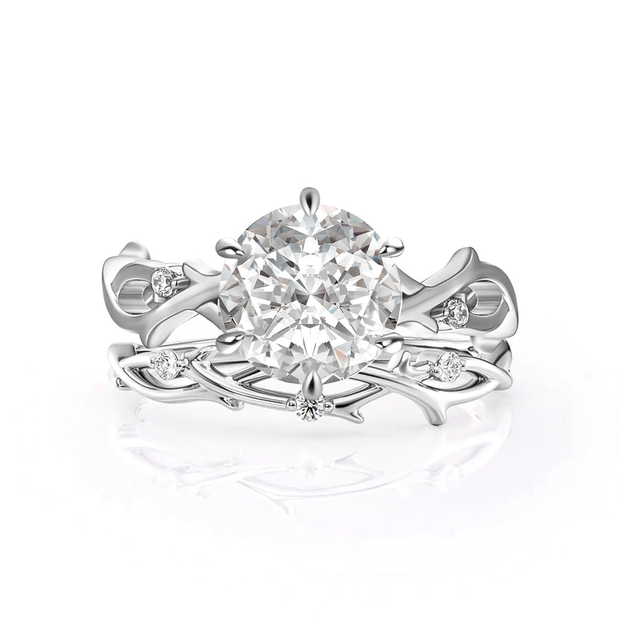 Moissanite 2.0 Ct Twig 6 Prong Round Cut Twist White Gold Wedding Set