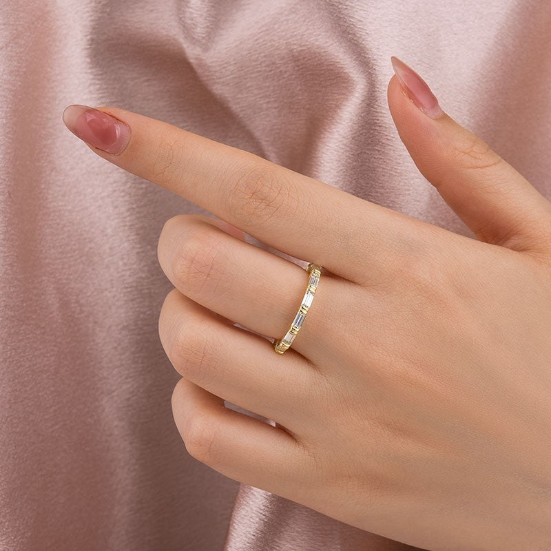Moissanite 2.0Ct Yellow Gold Emerald Cut Eternity Wedding Ring